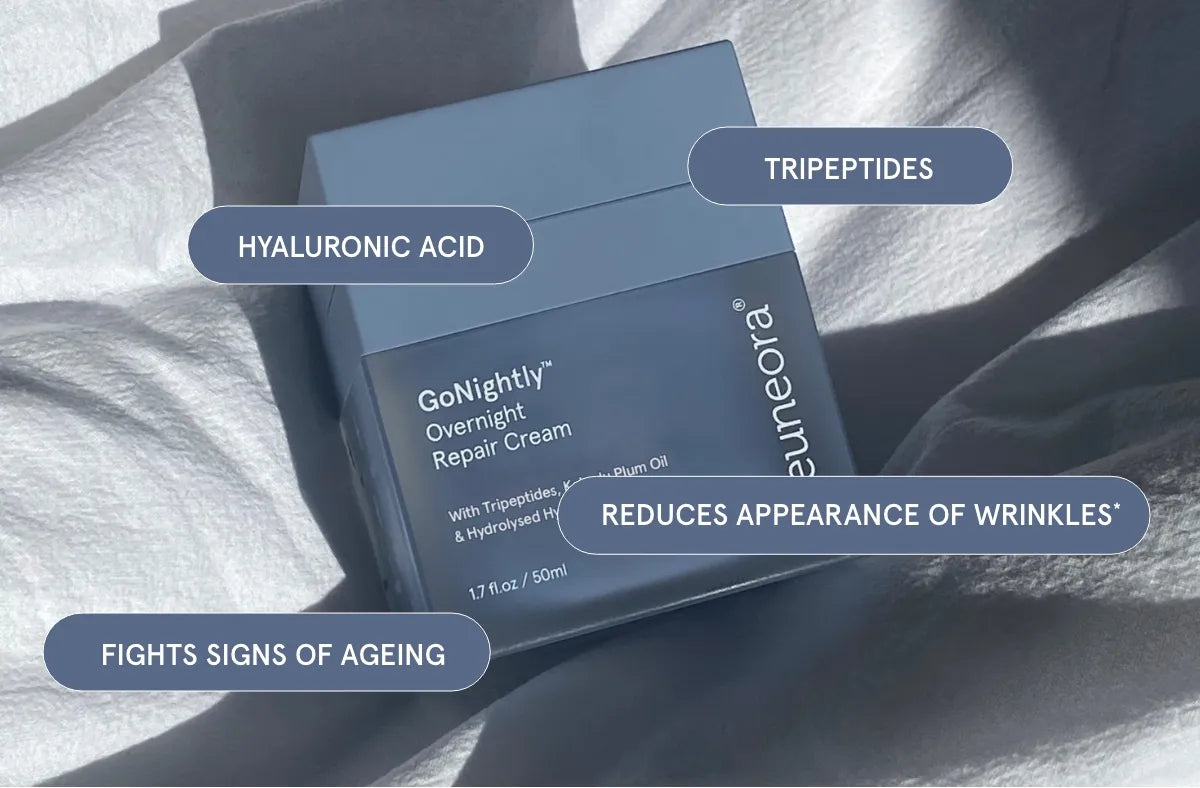 Night creams are formulated for overnight repair when skin is most receptive. GoNightly is richer than a day cream, with barrier-restoring lipids and a collagen-supporting tripeptide that work while you sleep.
