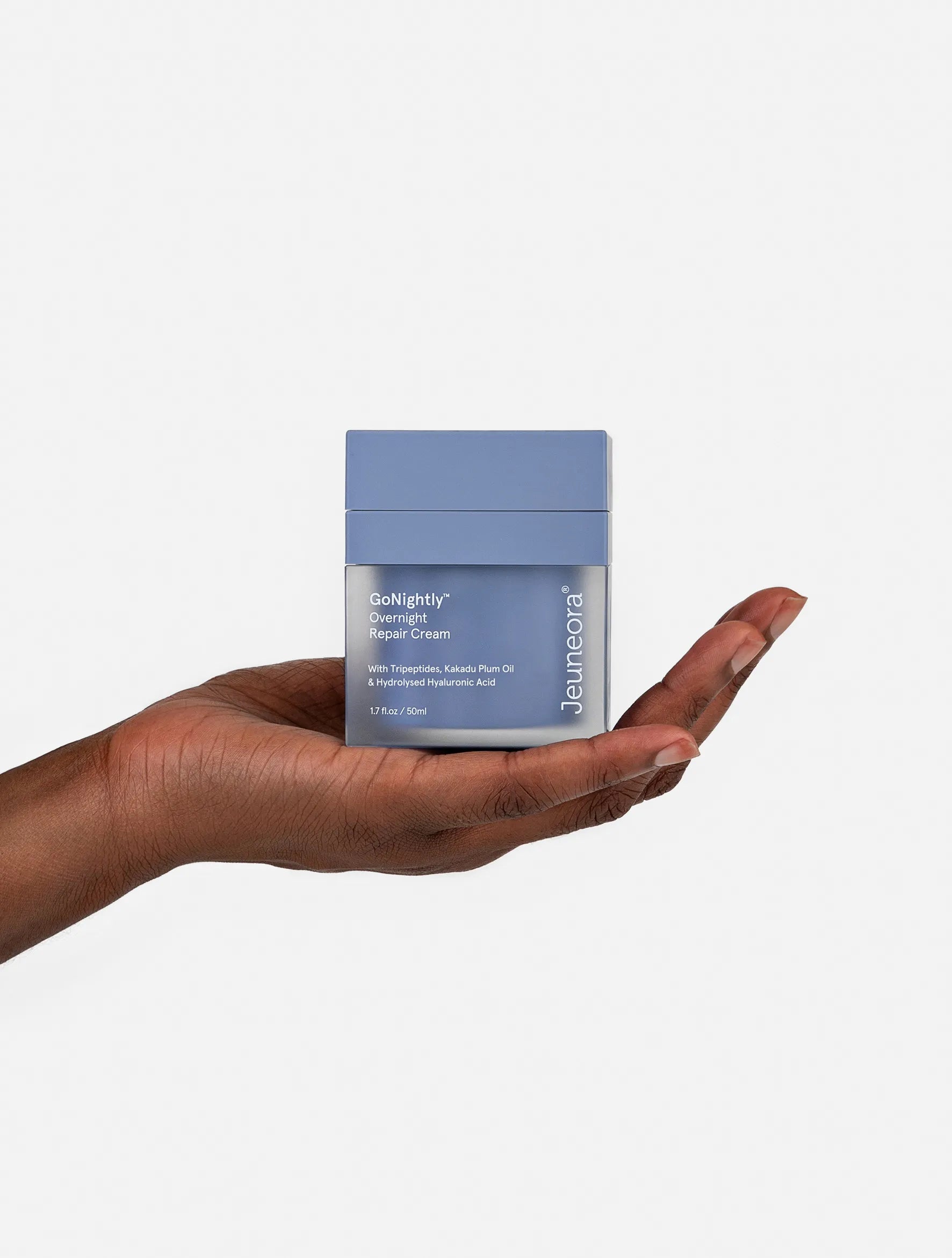 GoNightly is a luxurious night cream formulated with clinically studied tripeptides, hyaluronic acid and antioxidant botanicals for intensive overnight hydration, barrier repair and skin renewal.